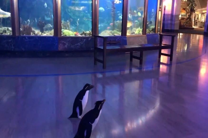 शिकागो में कोरोना के कारण एक्वेरियम को बंद कर दिया गया था, इस दौरान दो पेंगुइन का एक्वेरियम में घुमने का वीडियो सोशल मीडिया पर वायरल हो गया.